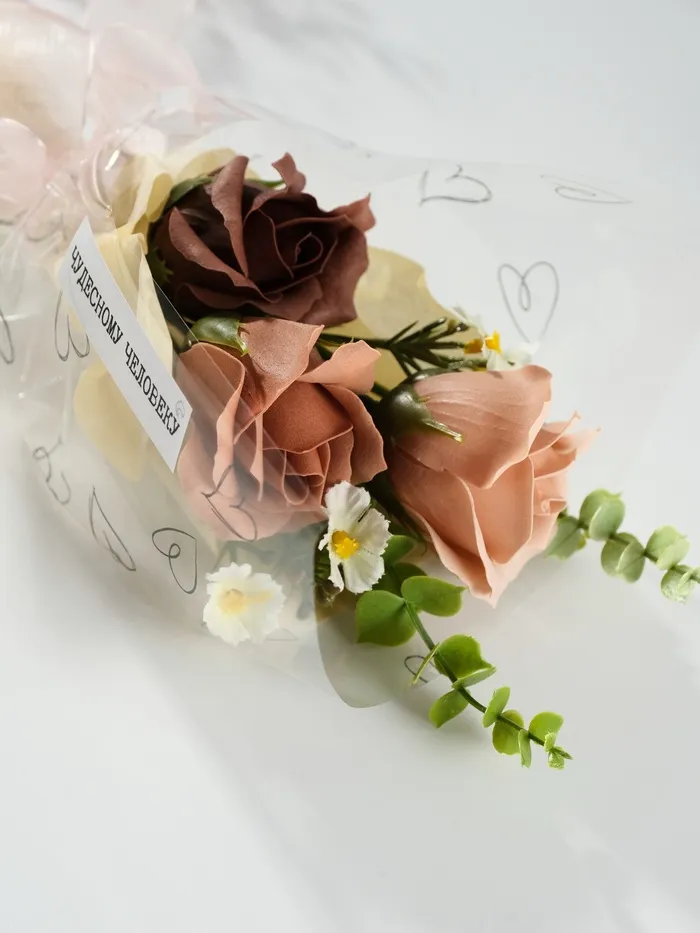 Букет из мыльных лепестков — прекрасный выбор для женщин и мужчин, друзей и коллег. Он станет отличным знаком внимания, который поможет создать атмосферу уюта и расслабления в любой день. Подарите близким возможность насладиться моментом заботы о себе.