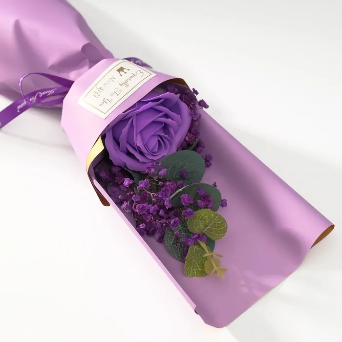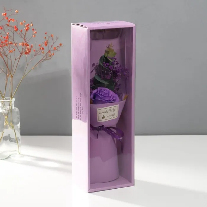 Букет из мыльных лепестков для ванны «Роза и эвкалипт», подарочный, фиолетовый, 7.5×11×34.5 см — Характеристики