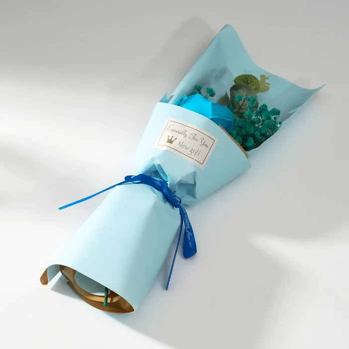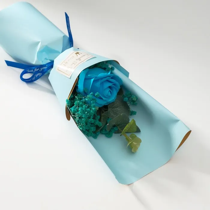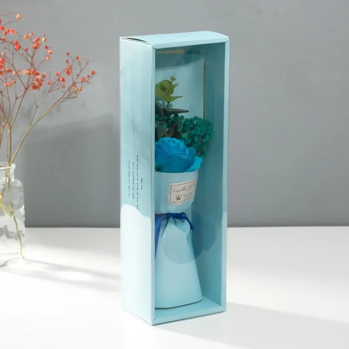 Букет из мыльных лепестков для ванны «Роза и эвкалипт», подарочный, голубой, 7.5×11×34.5 см — Характеристики