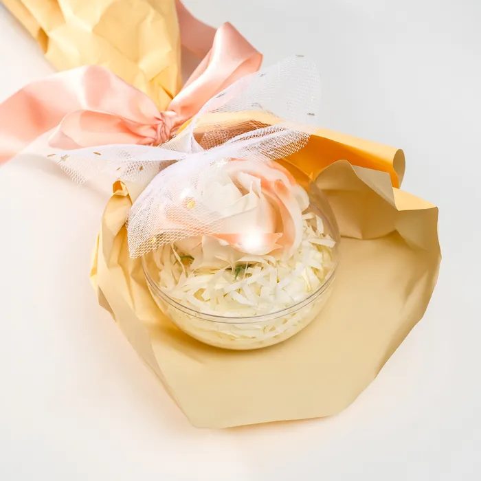Букет из мыльных лепестков для ванны «Роза в шарике», подарочный, жёлтый, 8.5×8.5×36 см — Характеристики