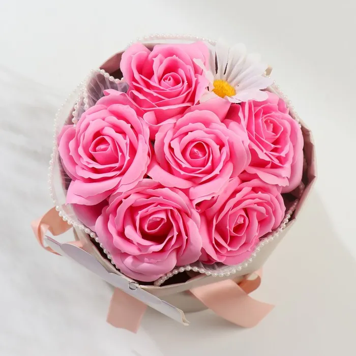 Букет из мыльных лепестков для ванны «Розовые розы и ромашка», подарочный, 17×17×27 см — Характеристики
