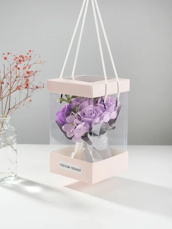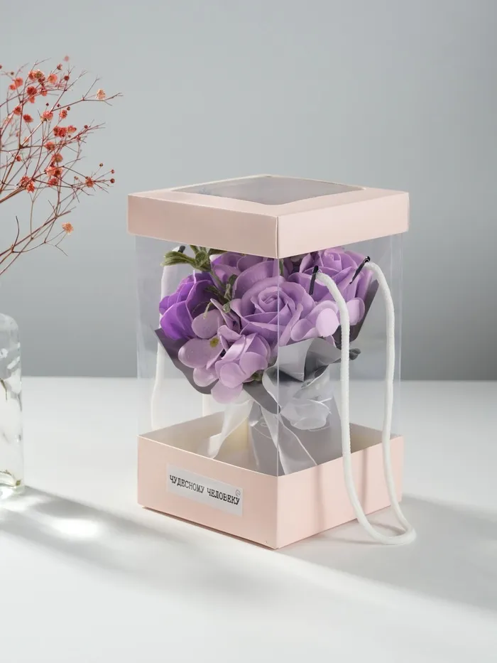 Букет из мыльных лепестков для ванны «Розы и флоксы в подарочной упаковке», сиреневый, 12.5×12.5×20.5 см — Характеристики