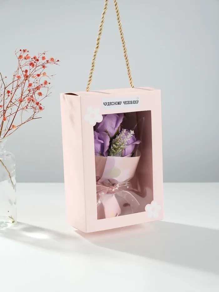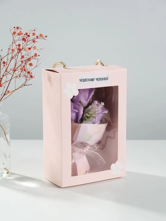 Букет из мыльных лепестков для ванны «Розы в подарочной коробке», фиолетовый, 7.5×13.8×20.5 см — Характеристики