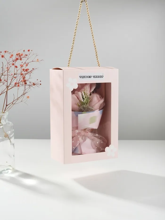 Букет из мыльных лепестков для ванны «Розы в подарочной коробке», розовый, 7.5×13.8×20.5 см — Характеристики