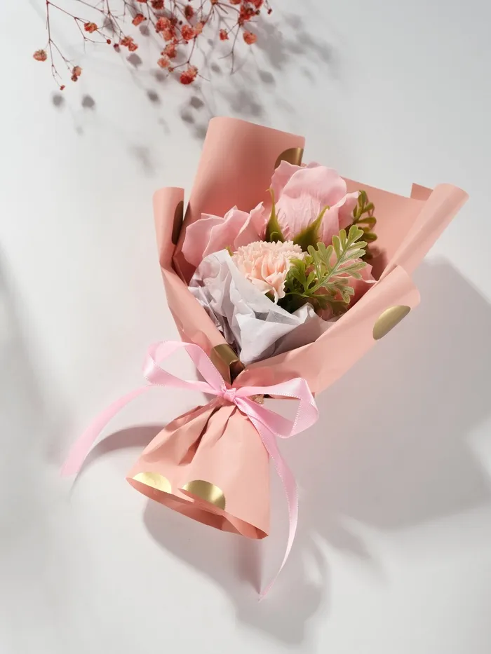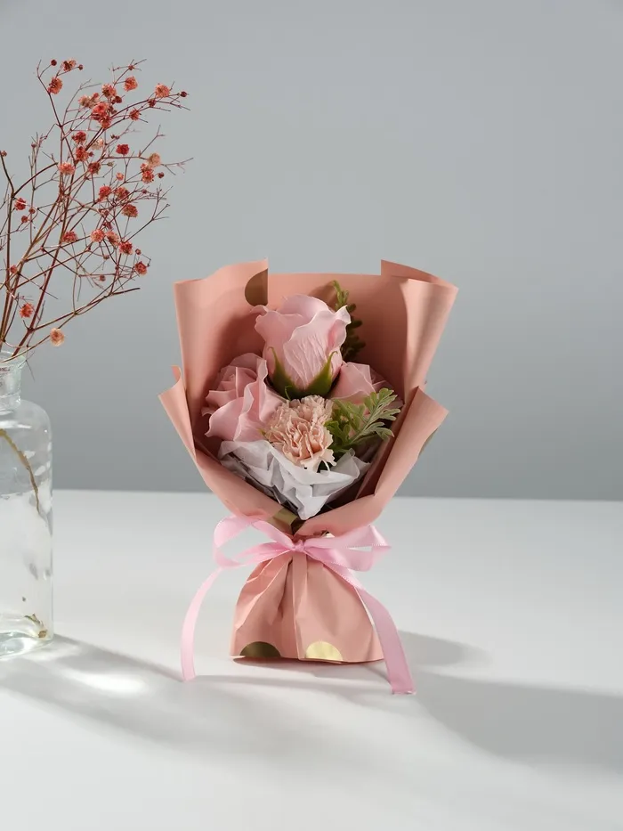 Погрузитесь в атмосферу уюта и роскоши с этим изысканным подарком, который станет настоящим украшением любого праздника. Букет из мыльных лепестков в нежном розовом оттенке — это не просто красота, но и практичность, объединённые в одном решении.