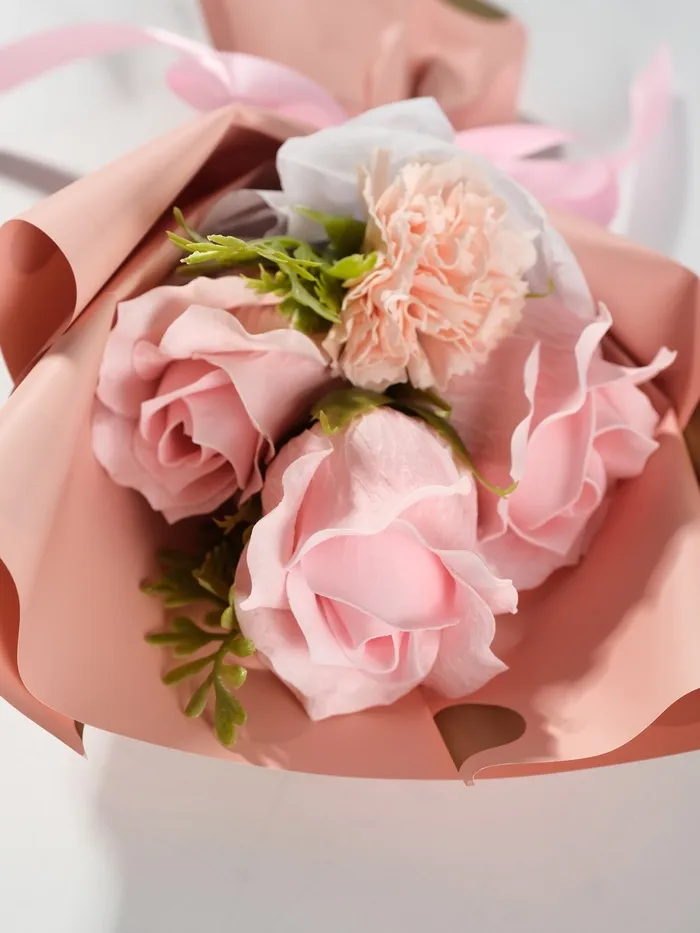 Букет из мыльных лепестков для ванны «Три розы и гвоздика», подарочный, розовый, 7.5×13.5×20 см — Характеристики