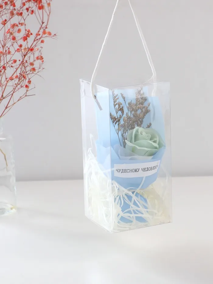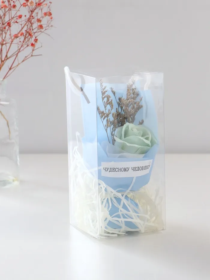 Букет из мыльных лепестков "Роза подарочная в коробке" голубой 8,6х8,6х18,5 см — Характеристики
