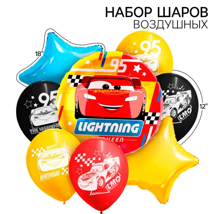 Букет из шаров "Молния",фольга, латекс, набор из 8 шт., Тачки — Характеристики