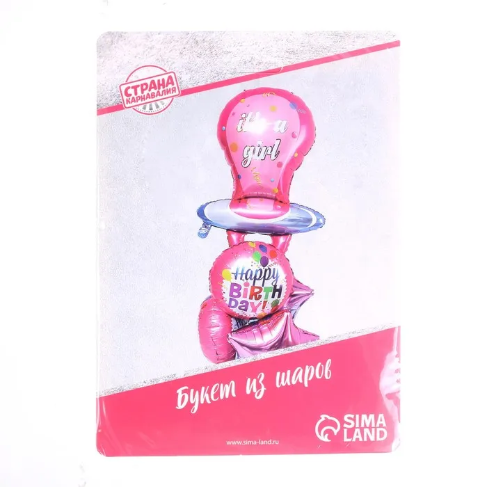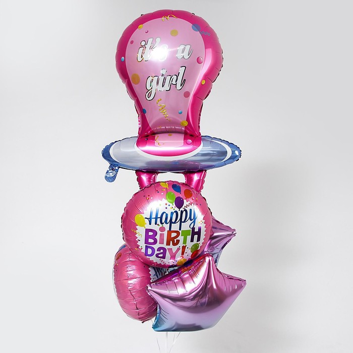 Букет из шаров «С соской. На выписку – девочка», фольга, латекс, набор 5 шт. — Характеристики