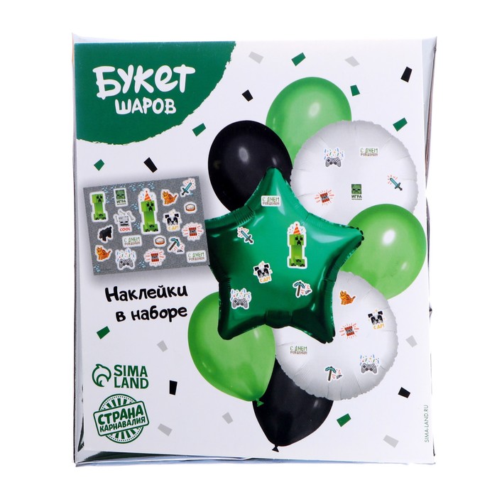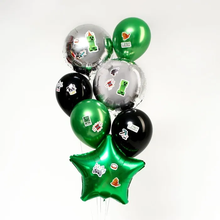 Букет из воздушных шаров «Пиксели», латекс, фольга, наклейки, набор 8 шт. — Характеристики
