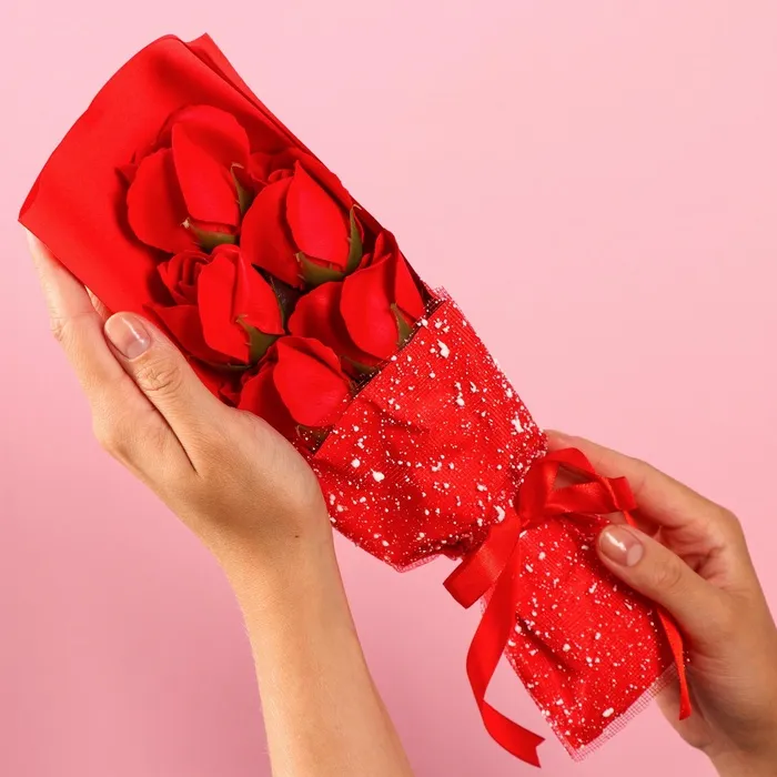 Благодаря точному повторению мелких деталей мыльные розы схожи с настоящими цветами. Композиция наполняет помещение тонким и ненавязчивым цветочным ароматом.