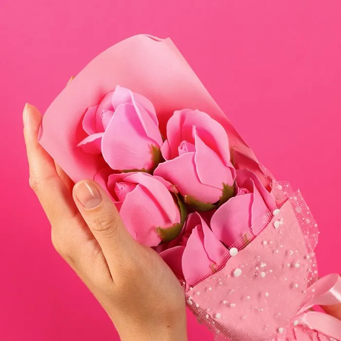 Благодаря точному повторению мелких деталей мыльные розы схожи с настоящими цветами. Композиция наполняет помещение тонким и ненавязчивым цветочным ароматом.