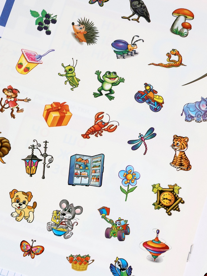 - 50 наклеек для выполнения заданий, что добавляет игровой элемент и мотивирует ребёнка к обучению.
