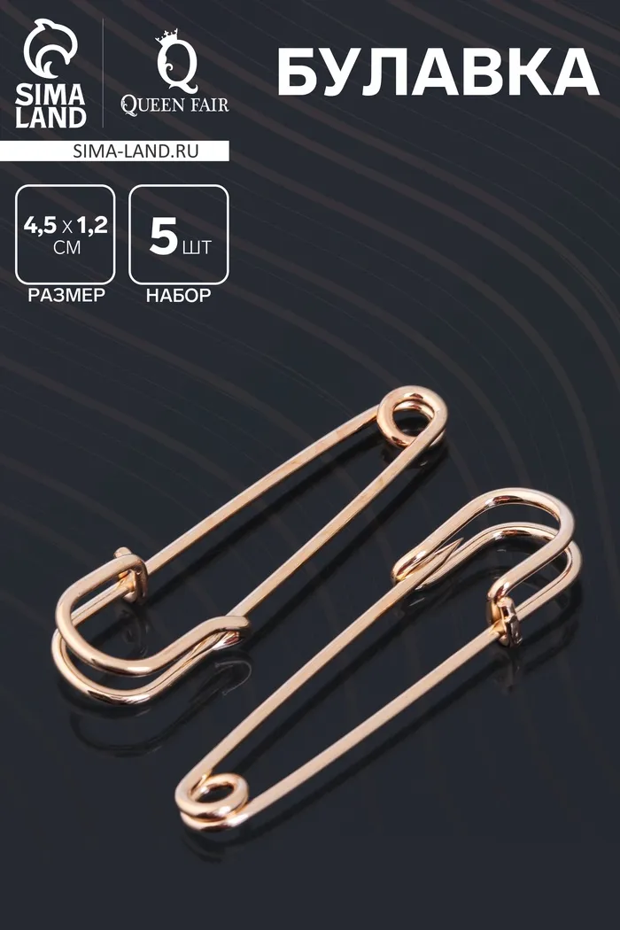 Булавка 4,5×1,2 см (набор 5 шт.), СМ-208-3, цвет золото — Характеристики