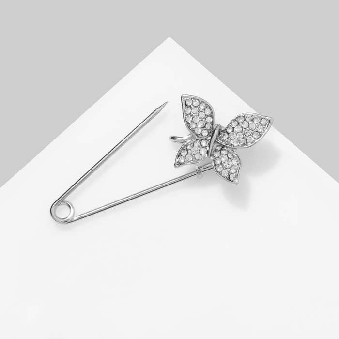 Булавка «Бабочка», 5 см, цвет белый в серебре — Характеристики