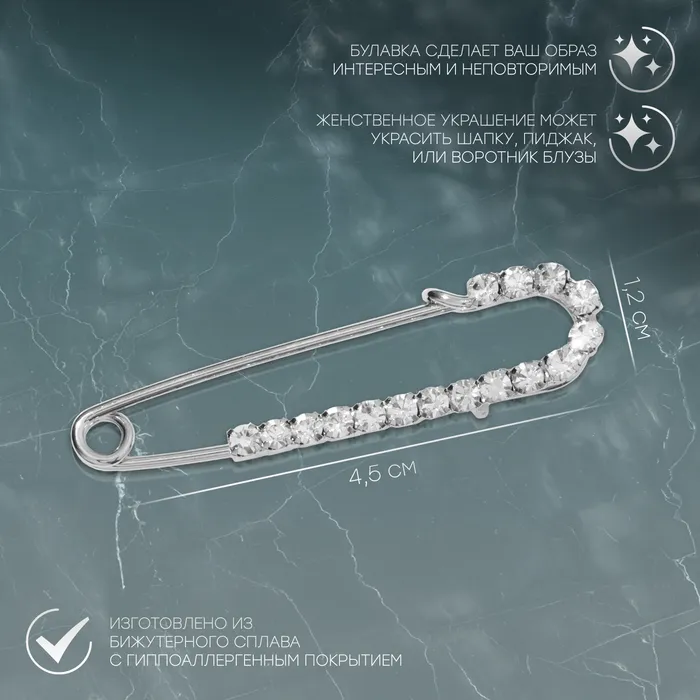 Булавка «Классика» россыпь, 4.5 см, цвет белый в серебре — Характеристики