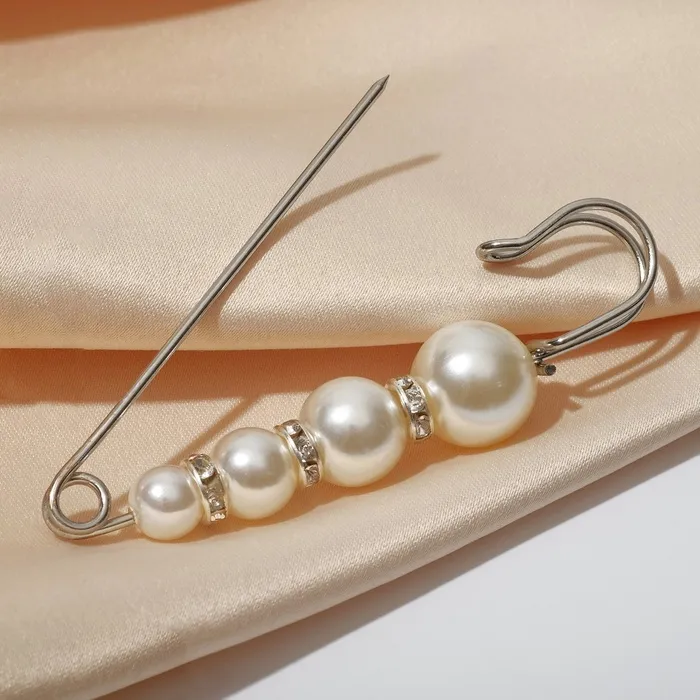 Изысканная булавка длиной 7,5 см из коллекции «Жемчуг» гармонично сочетает в себе благородство серебристой основы и нежность белых вставок из искусственного жемчуга и сверкающих страз. Это украшение станет утончённым акцентом, подчёркивающим женственность и изысканный вкус.