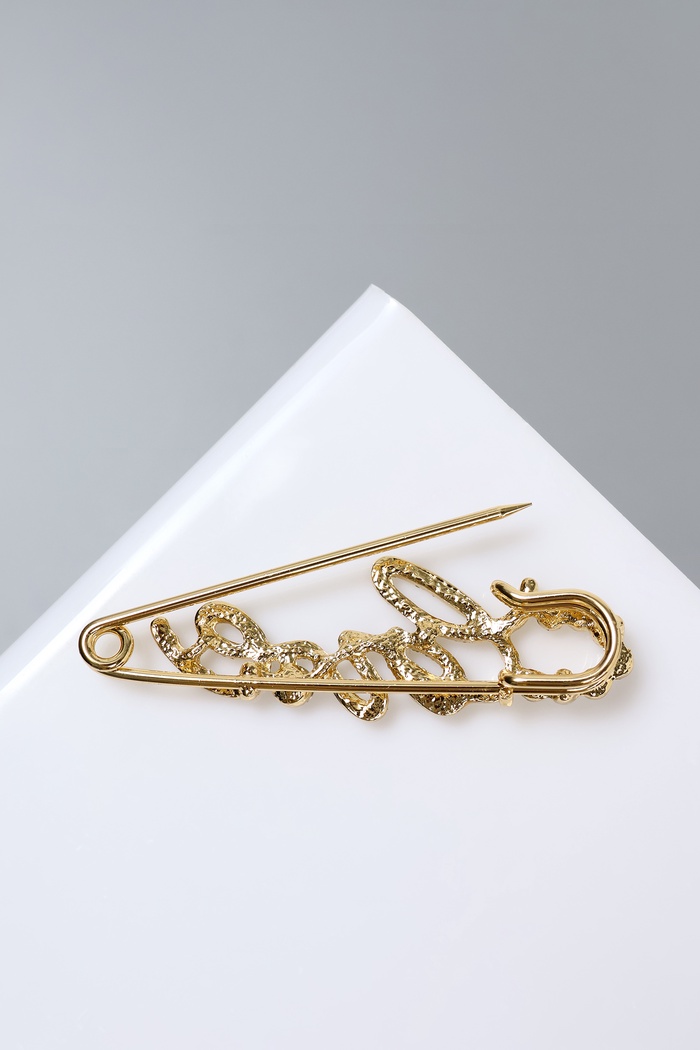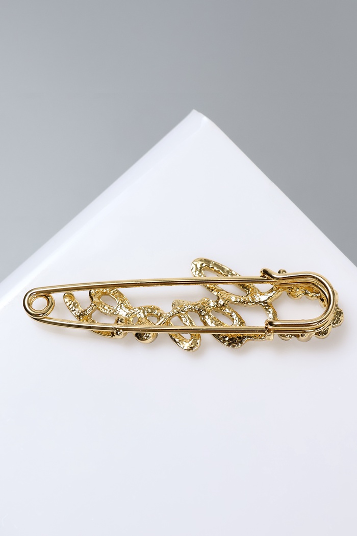 - Стильный дизайн: белый цвет с золотыми элементами делает булавку универсальной и подходящей к любому наряду.
