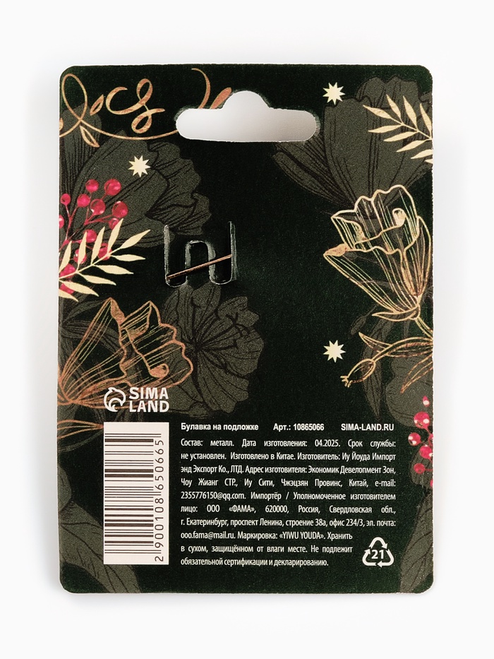 Булавка новогодняя на подложке «Время волшебства» — Характеристики