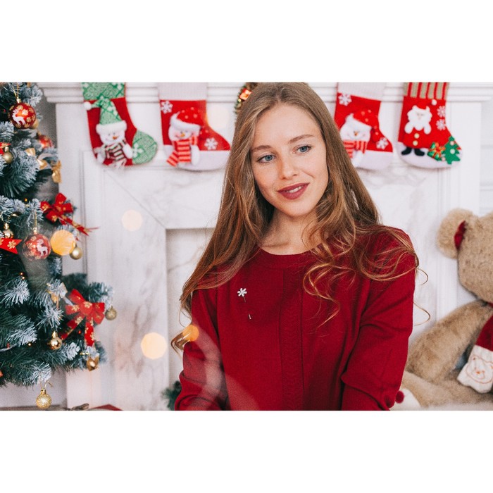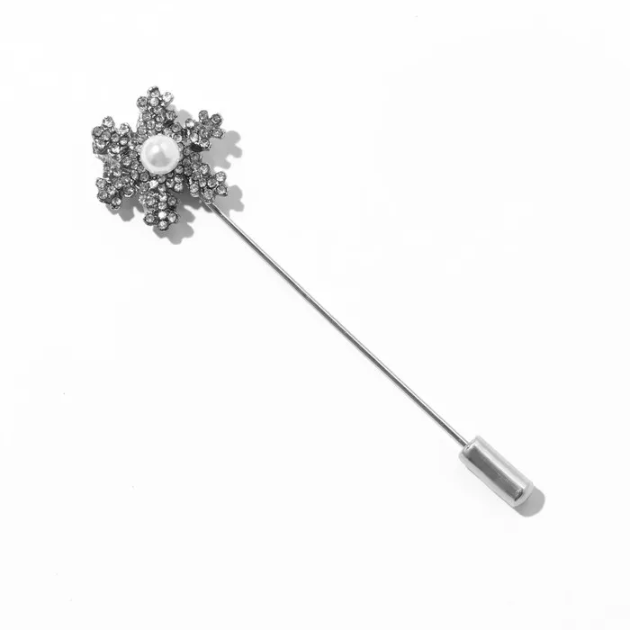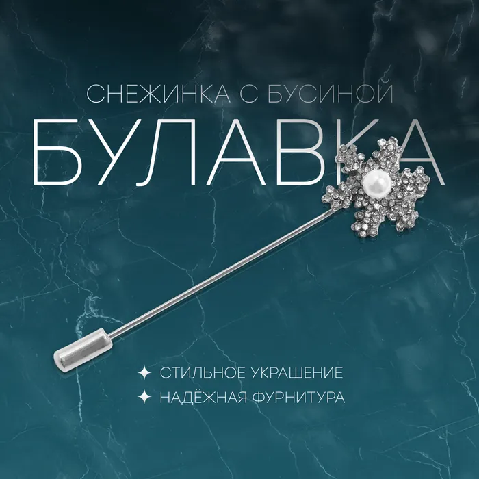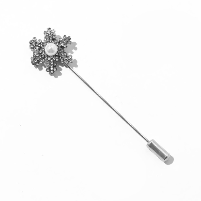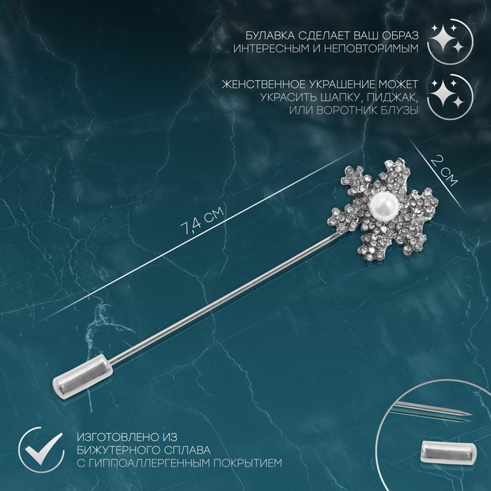 Булавка «Новогодняя» снежинка с бусиной, 7 см, белая в серебре — Характеристики