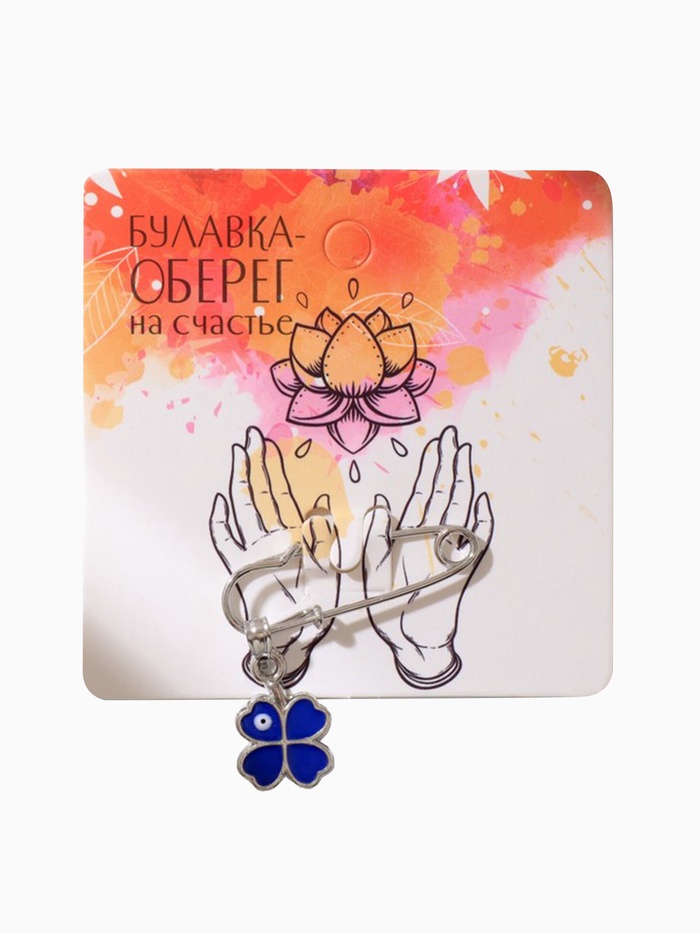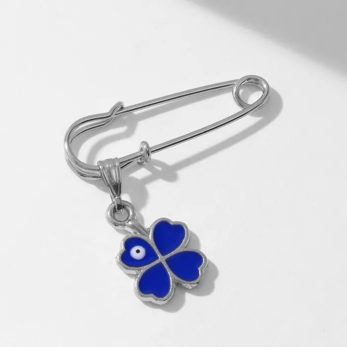 Булавка-оберег «Клевер» с глазком, 3.5 см, синяя в серебре — Характеристики