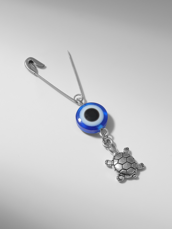 Эта миниатюрная булавка-оберег воплощает в себе морскую тематику и символ здоровья, олицетворённая образцом черепахи. Компактный размер 2,2 см и глубокий синий цвет в сочетании с серебристой фурнитурой создают стильный и выразительный аксессуар, который станет изящным дополнением к любому образу.