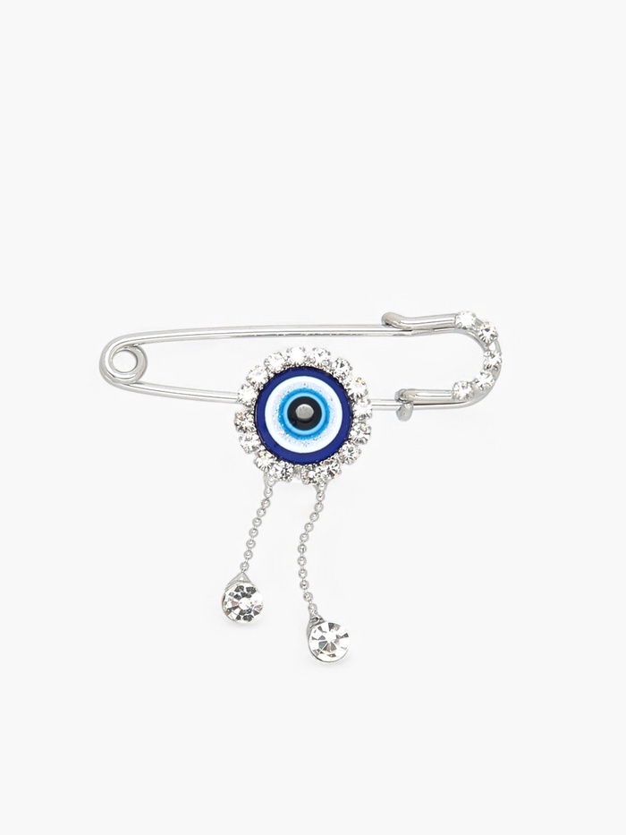 Булавка-оберег «От сглаза» глаз с подвесками, 5 см, бело-синяя в серебре — Характеристики