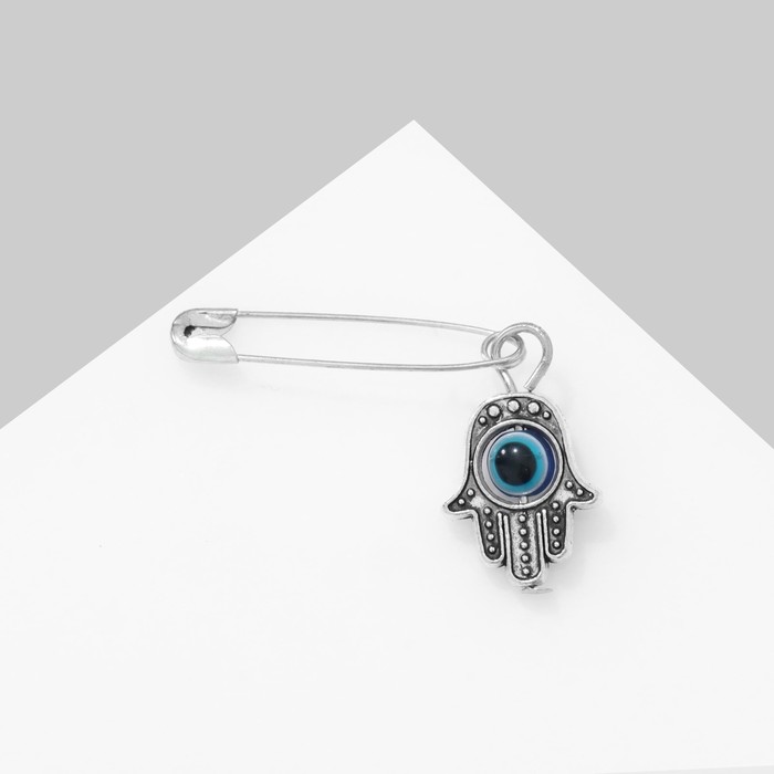 Булавка-оберег «Рука счастья», 2 см, синяя в серебре — Характеристики