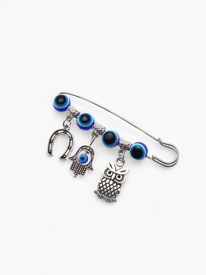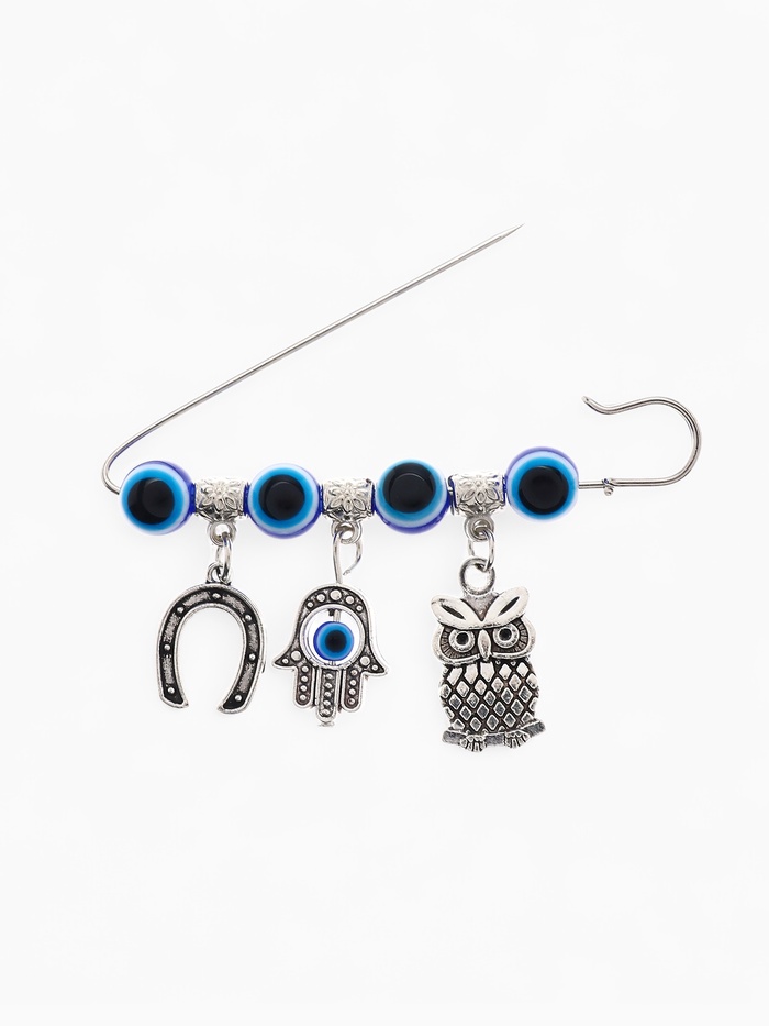 Булавка-оберег «Сова от сглаза», 6 см, цвет синий в серебре — Характеристики