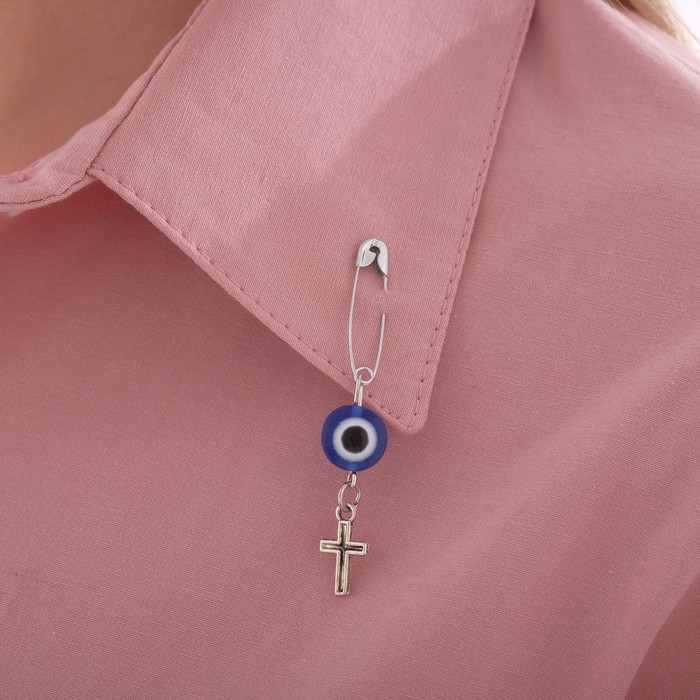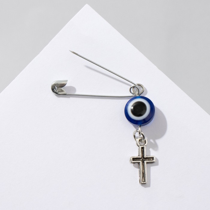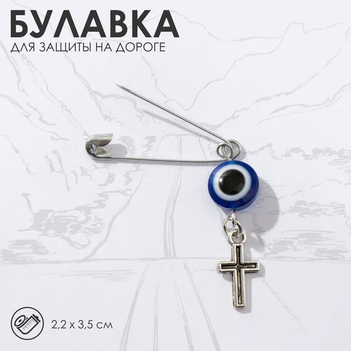 Булавка-оберег «Защита на дороге», крестик, 2.2 см, бело-синяя в серебре — Характеристики