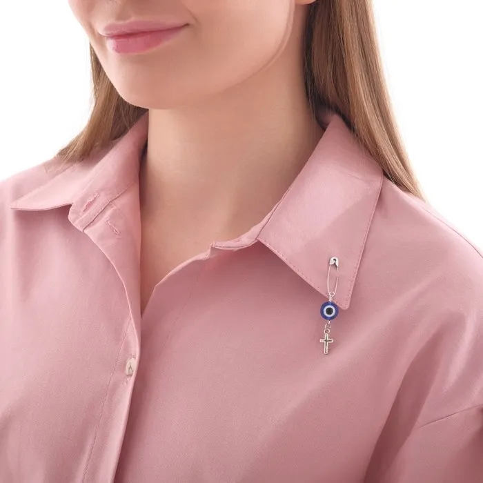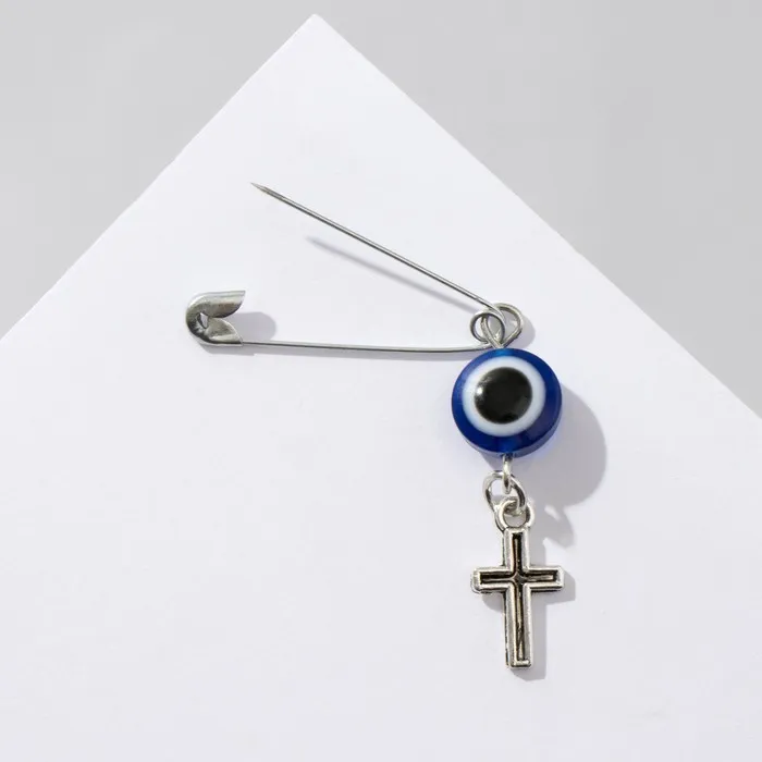 Миниатюрная булавка с крестиком в бело-синем исполнении — это стильный и символичный оберег, который станет надёжным спутником в дороге. Компактный размер 2,2 см и серебристое металлическое основание делают изделие универсальным и удобным для ношения в повседневной жизни. Пластиковая вставка подчёркивает чистоту и глубину цвета, создавая гармоничный и лаконичный образ.
