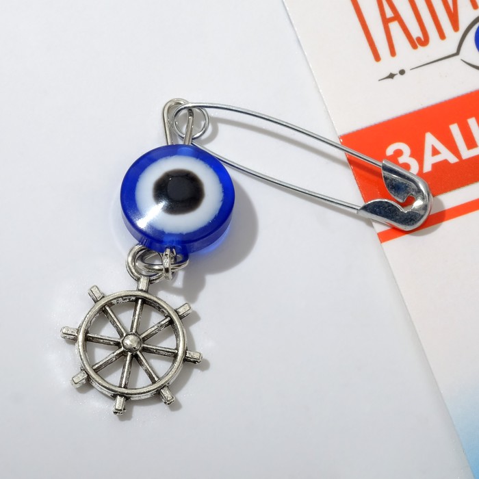 Булавка-оберег «Защита на дороге», штурвал, 2.2 см, бело-синяя в серебре — Характеристики