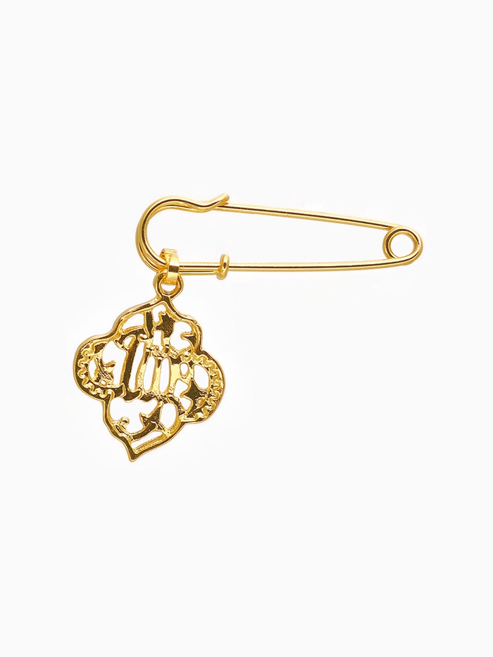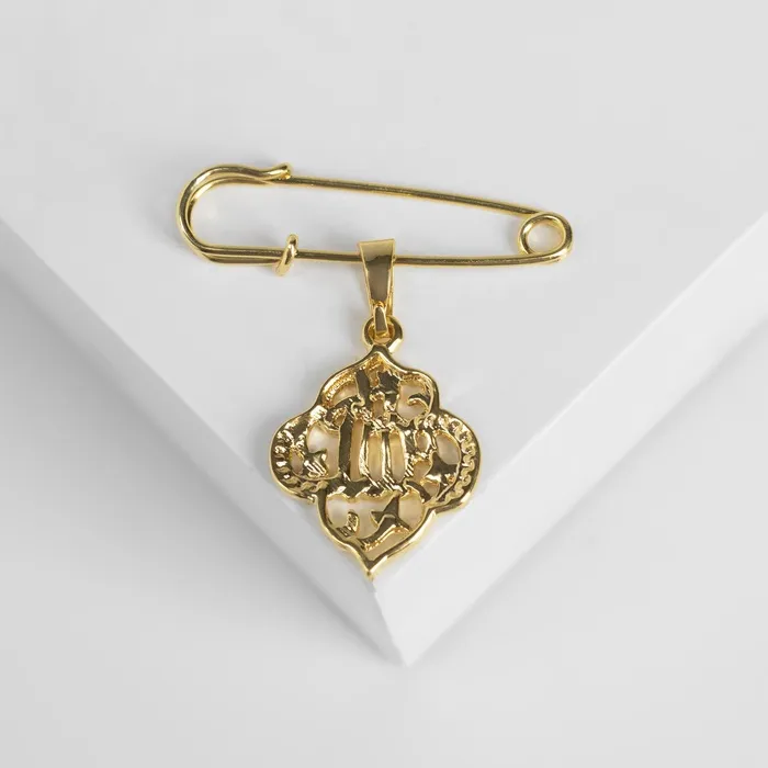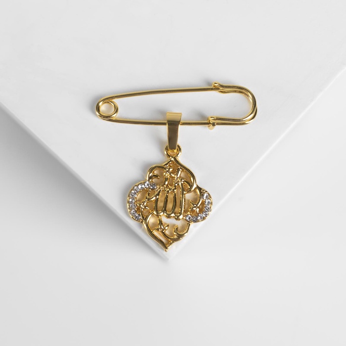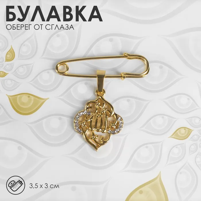 Данная булавка – настоящая находка для модниц, предпочитающих нетривиальные аксессуары. Брошь-булавка станет не только оригинальным дополнением вашего наряда, но и позволит без труда приколоть при необходимости палантин или шейный платок. Используйте её в качестве украшения шляпки, рубашки или галстука. Булавка с подвеской «Мусульманская» басмала, 3 см, цвет белый в золоте внесёт особую нотку изящности в ваш образ.