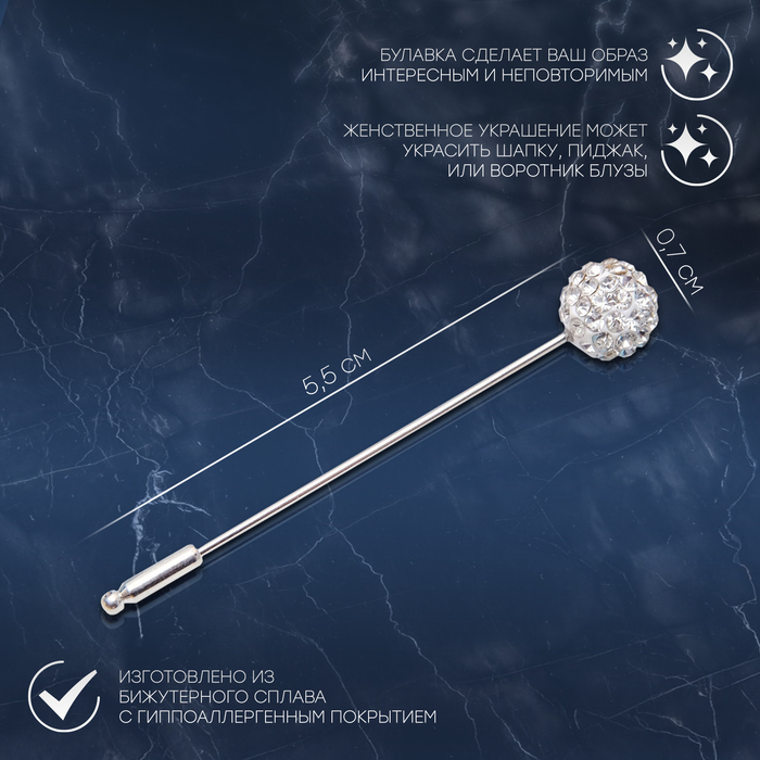 Булавка «Шамбала» классика, 5.5 см, белая в серебре — Характеристики