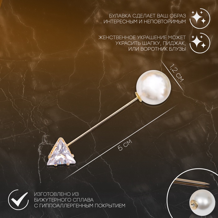 Булавка «Стрела» 5см, цвет белый в золоте — Характеристики