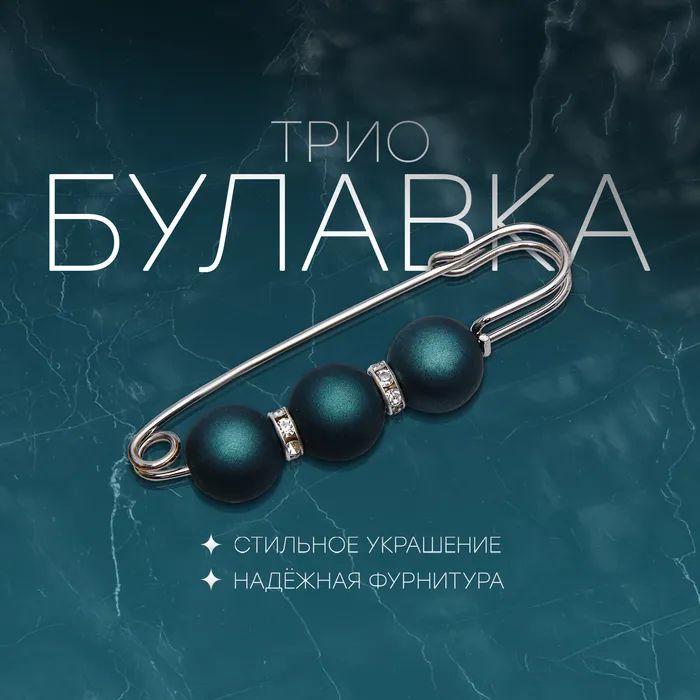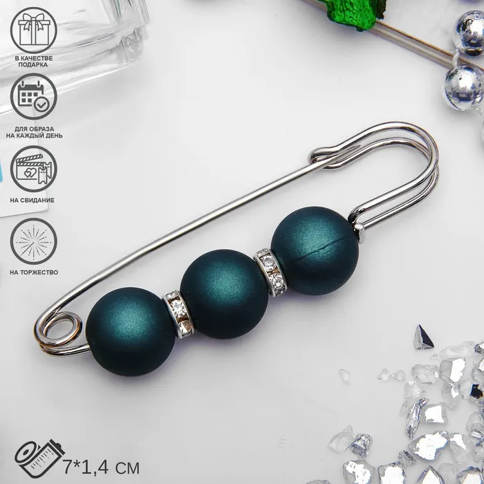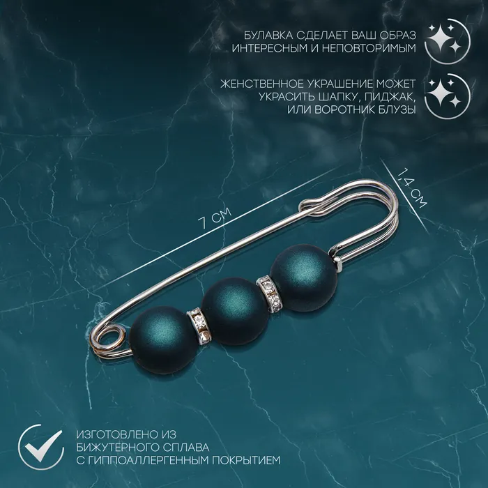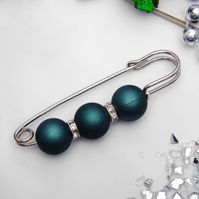 Булавка «Трио» 7 см, шар №14, матовый тёмно-зелёная в серебре — Характеристики