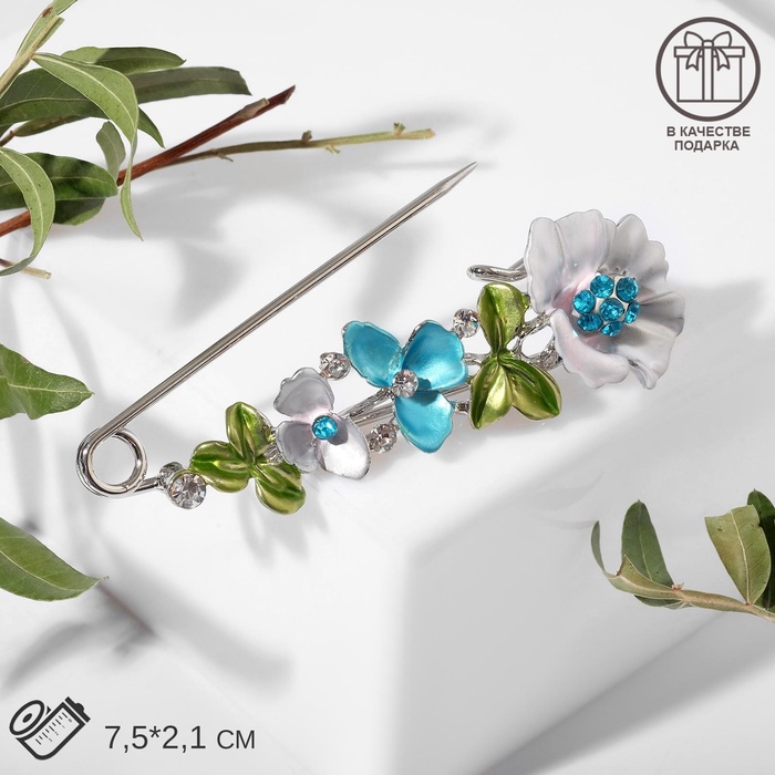 Булавка «Цветочная» дорожка, 7,5см, цветная в серебре — Характеристики