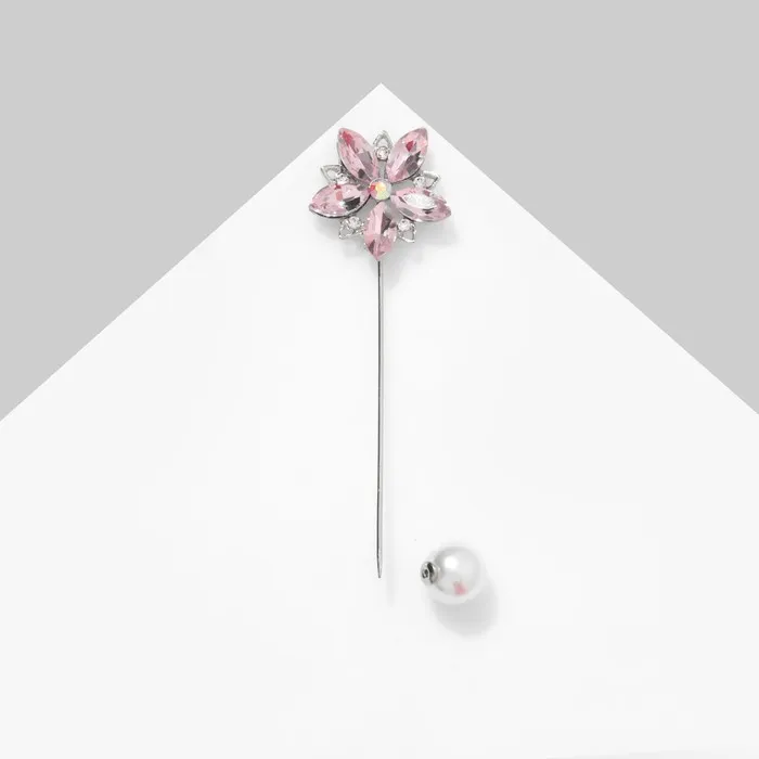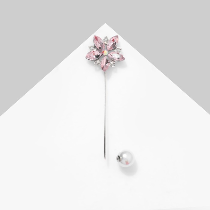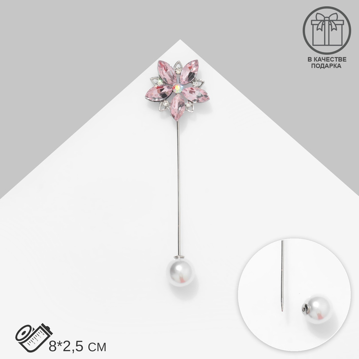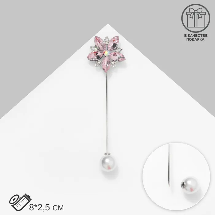 Булавка «Цветок» сирень, 8 см, розовая в серебре — Характеристики