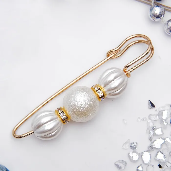 Элегантная булавка длиной 7 см сочетает в себе изящество белого цвета и благородство золотистой фурнитуры, создавая утончённый акцент в вашем образе. Этот аксессуар из коллекции «Жемчуг» украшен искусственным жемчугом, пластиком и сверкающими стразами, что придаёт ему лёгкость и праздничный блеск.