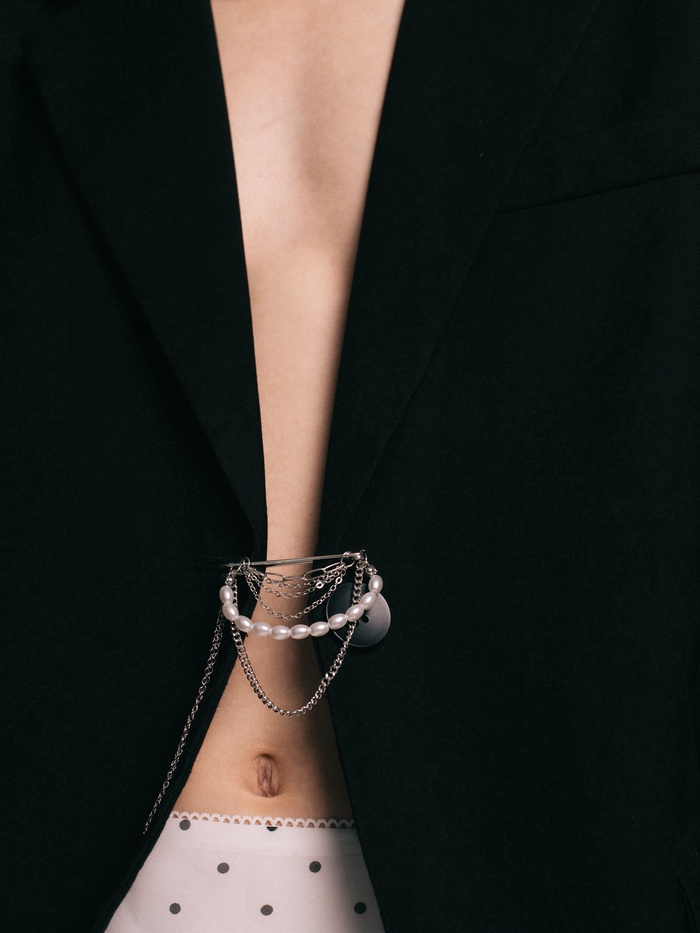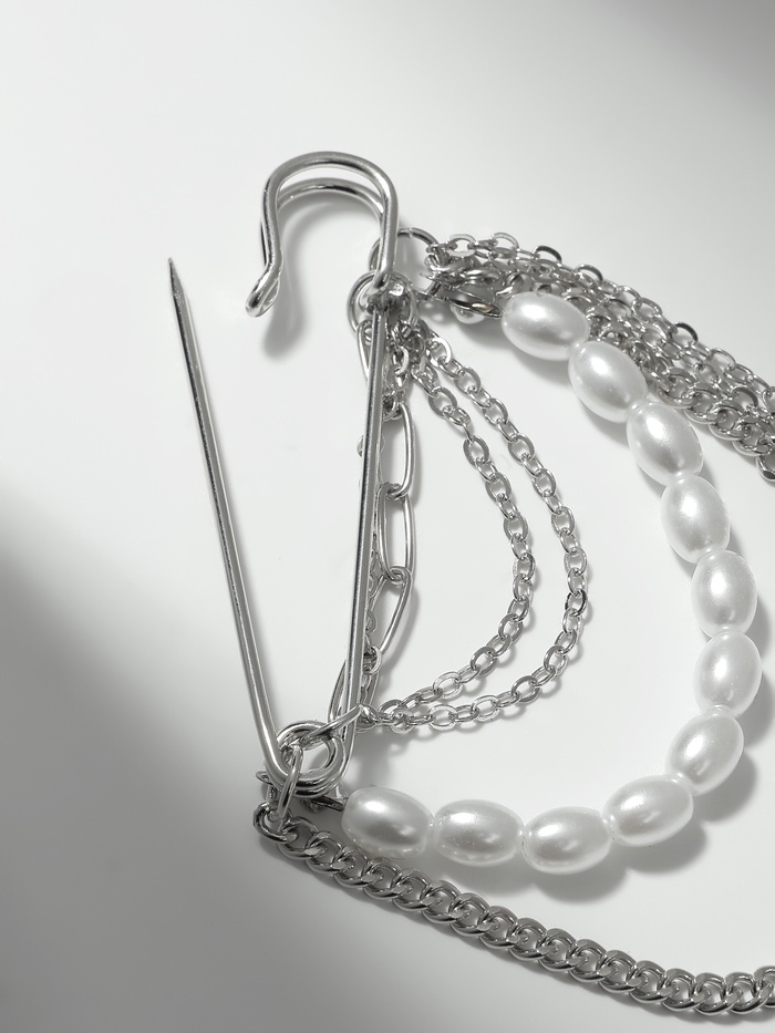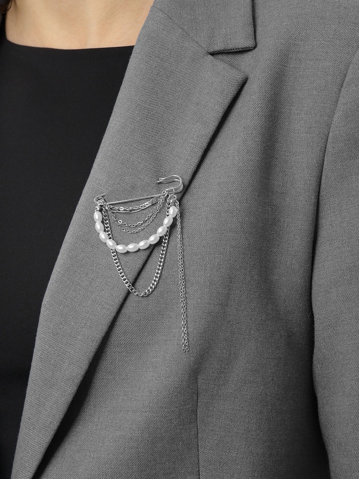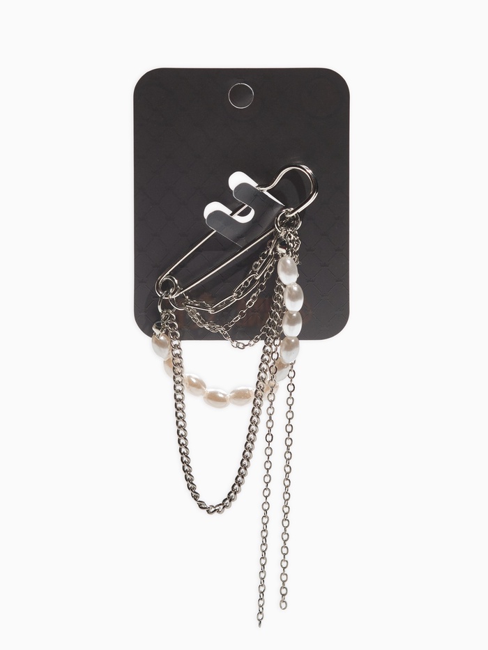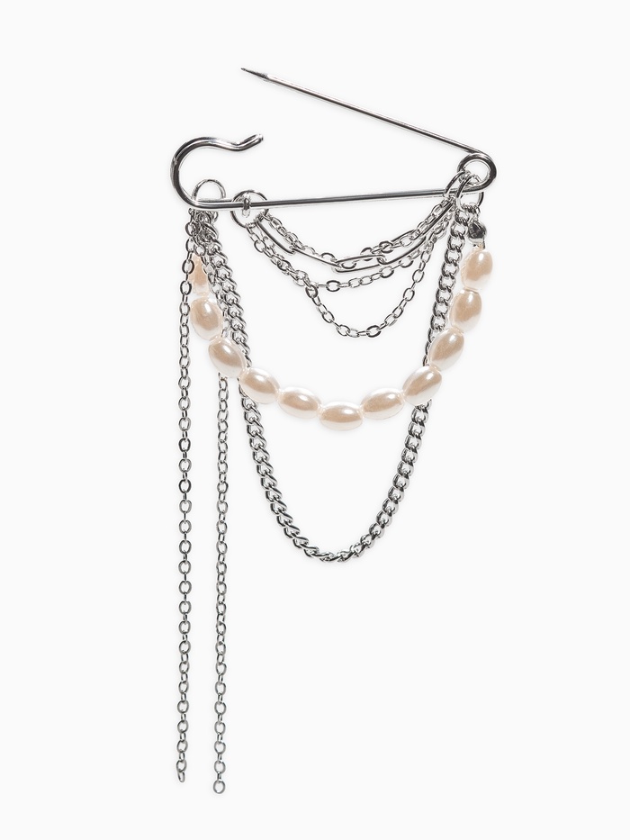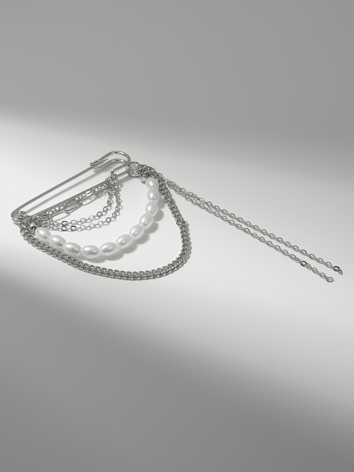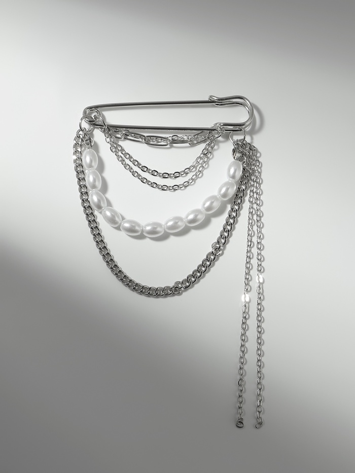 Булавка «Жемчужины» с цепочками, белая в серебре — Характеристики