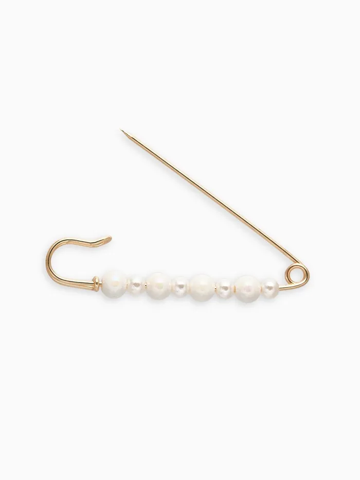 Эта изысканная булавка длиной 7,3 см станет настоящим акцентом в вашем образе. Выполненная из металла с золотым покрытием и украшенная белым жемчугом, она добавляет нотку роскоши и элегантности каждому наряду. Стильный и лаконичный дизайн делает её универсальным аксессуаром, подходящим для любых случаев — от повседневных до торжественных.