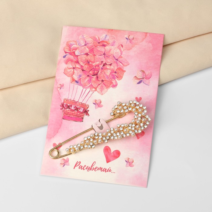 Изготовленная из качественного металла с золотым покрытием, эта булавка сочетает в себе элегантность и долговечность. Белый жемчуг и блестящие стразы создают эффект роскошного сияния, что делает её отличным выбором для подарка маме, бабушке, сестре или подруге на 8 Марта или любое другое торжество.
