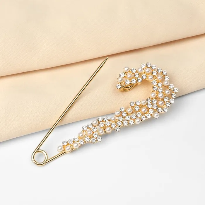 - Элегантный дизайн: жемчужная россыпь и стразы придают булавке утончённость и шарм, делая её универсальным аксессуаром.