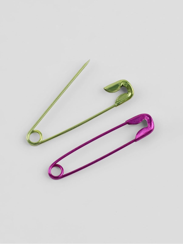 Английская булавка — универсальный помощник в быту, при шитье и рукоделии. Она пригодится для закалывания материала, драпировки ткани, создания украшений. С ней вы можете прикрепить к одежде или домашнему текстилю мягкие аксессуары. Острый край булавки прячется в безопасную петельку, она не уколет и прослужит вам долго.