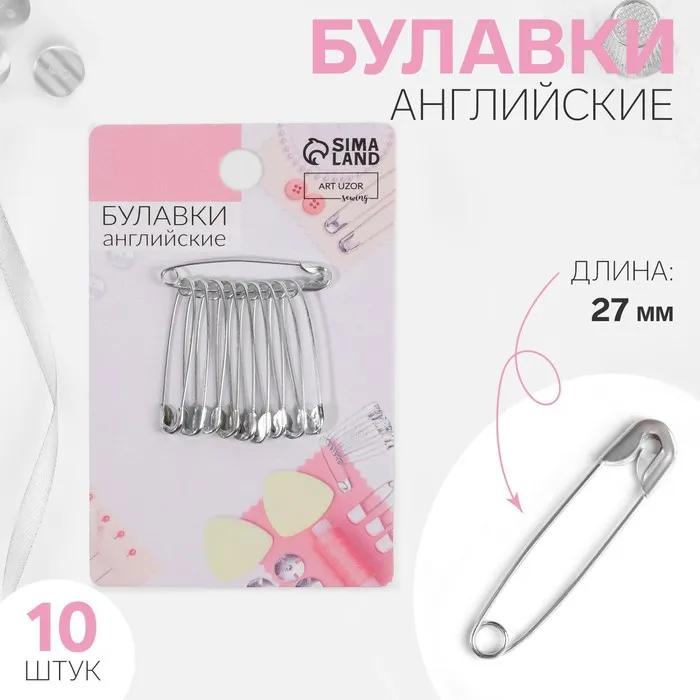 Булавки английские, 27 мм, 10 шт., цвет серебряный — Характеристики