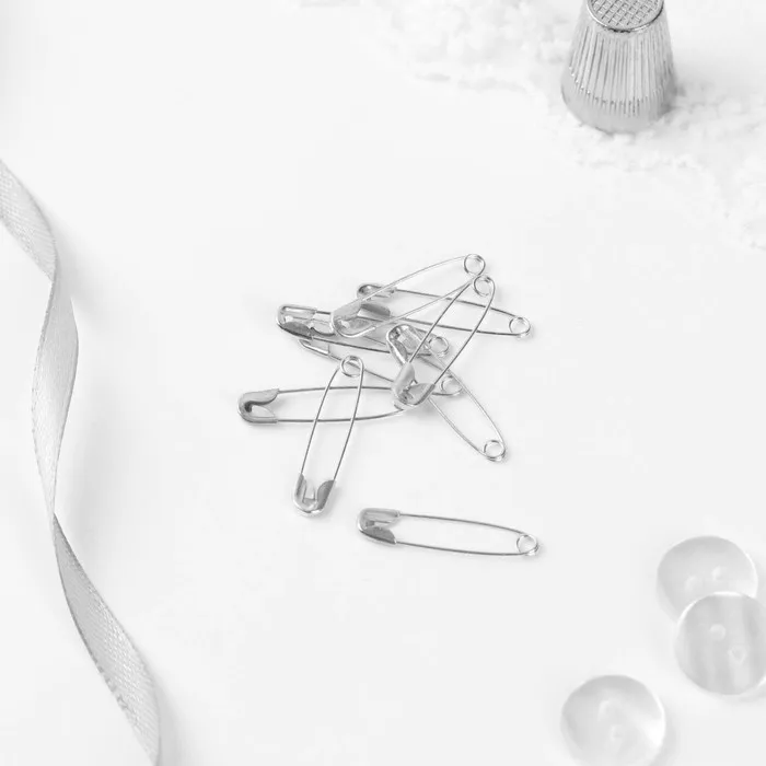 Английская булавка — универсальный помощник в быту, при шитье и рукоделии. Она пригодится для закалывания материала, драпировки ткани, создания украшений. С ней вы можете прикрепить к одежде или домашнему текстилю мягкие аксессуары. Острый край булавки прячется в безопасную петельку, она не уколет и прослужит вам долго.