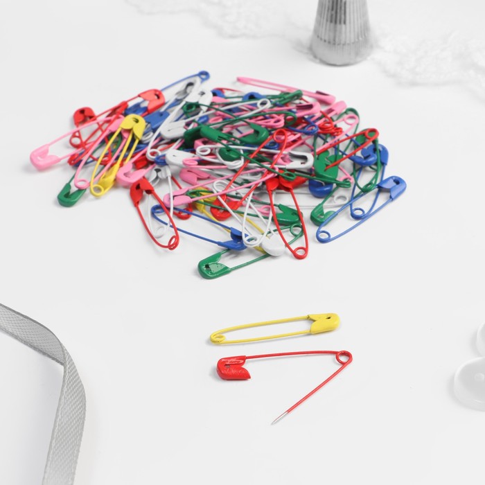 Булавки английские, 30 мм, 100 шт., цвет разноцветный