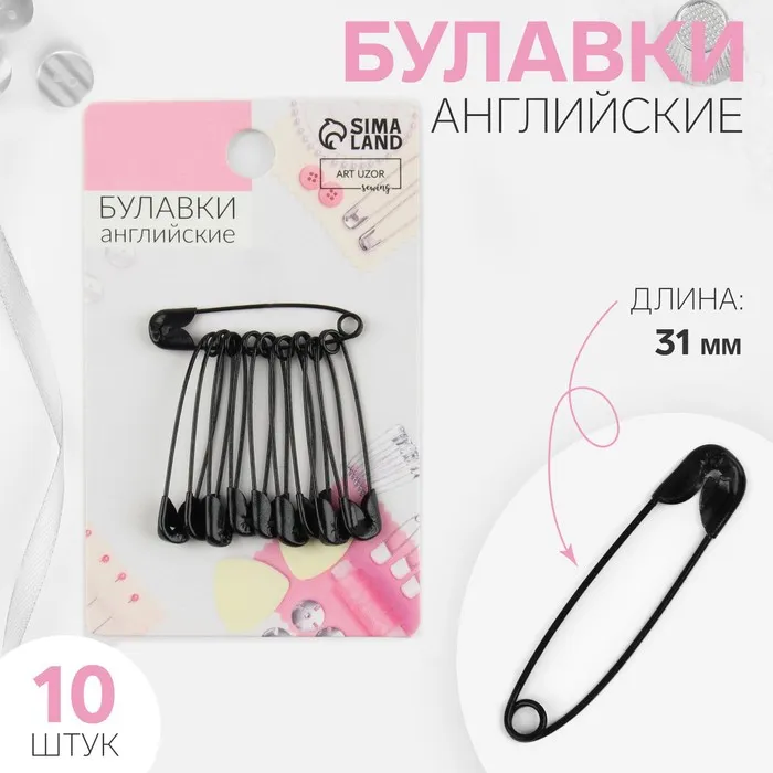 Английские булавки — незаменимые помощники при крое, шитье и рукоделии. Они пригодятся при закалывании материала, драпировке ткани или создании украшений. 10 чёрных булавок удачно впишутся в швейный арсенал каждой рукодельницы.