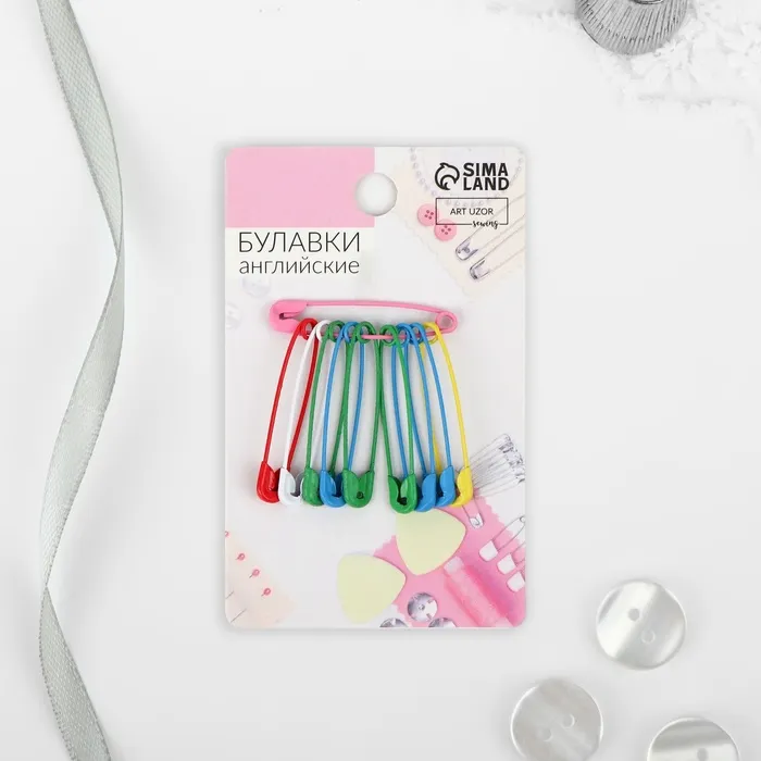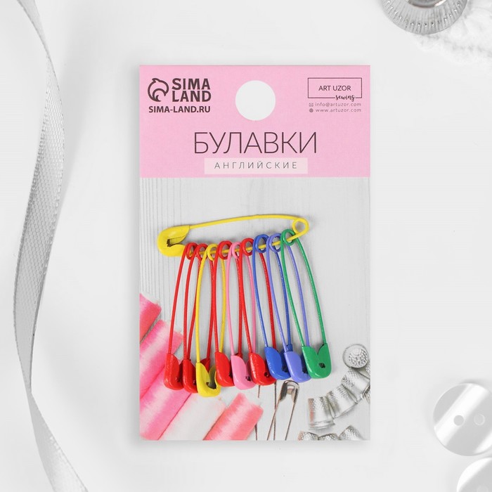 Булавки английские, 31 мм, 10 шт., цвет разноцветный