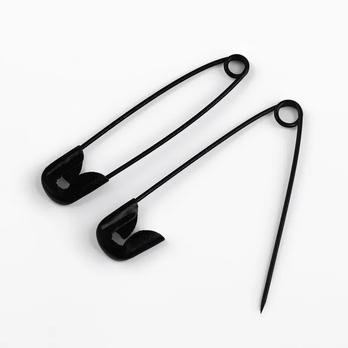 Изделия выполнены из металла, они прочные, гладкие и безопасные, надёжно закрываются на замок. Длина иголки 32 миллиметра.